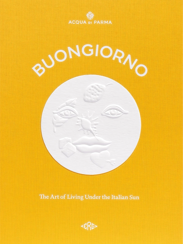 Printed in Italy on premium paper, the large-format volume is bound in a soft-touch cover that echoes the shades of light from sunrise to sunset, featuring a pattern by Italian artist Matteo Cibic. The book is housed in a vibrant linen slipcase, finished in the iconic Acqua di Parma yellow and integrating a sun motif imagined by Cibic, hand-embossed on a white disc.